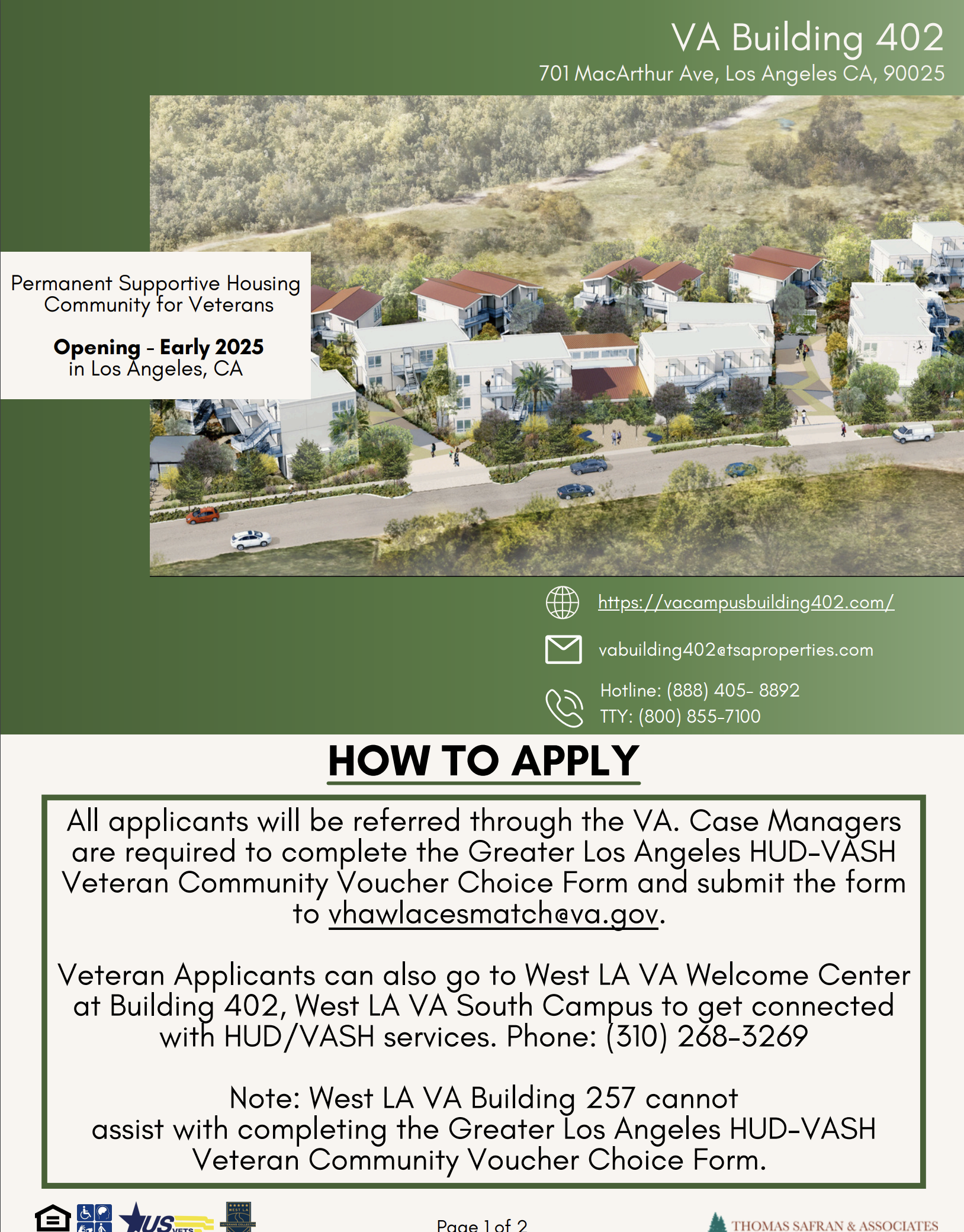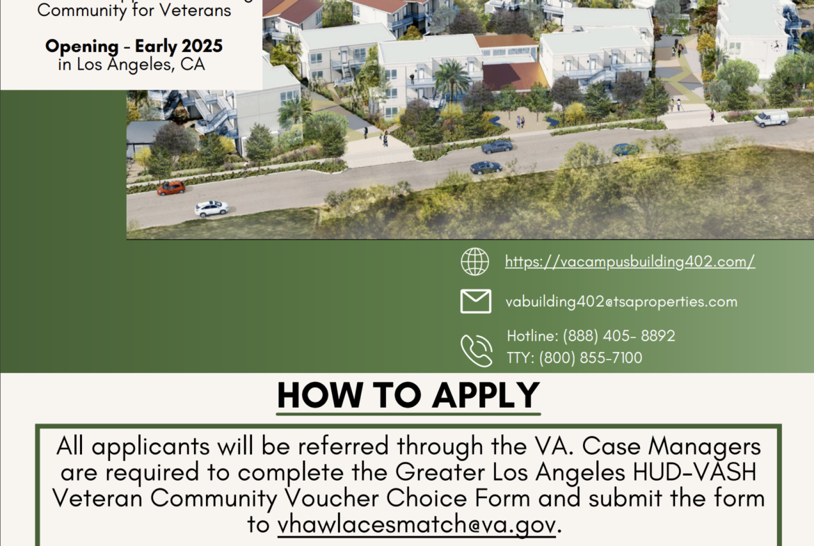 New building for on-site living at the VA Campus on West LA. Building features elevator, common living areas, service accessibility for veterans, and a lot more!